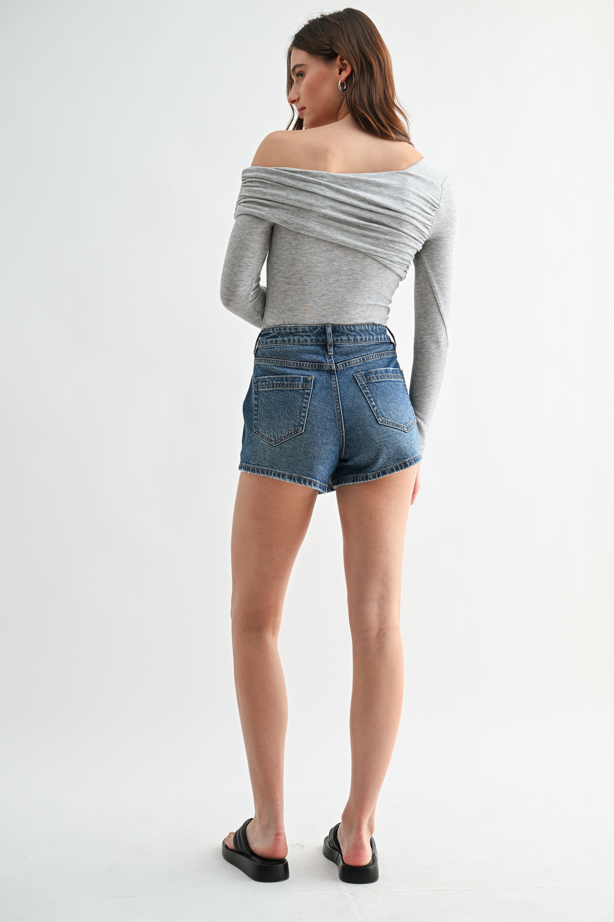 MEASUREMENT: FRONT RISE: 11", INSEAM: 3 1/2", LEG OPENING: 24 3/4"