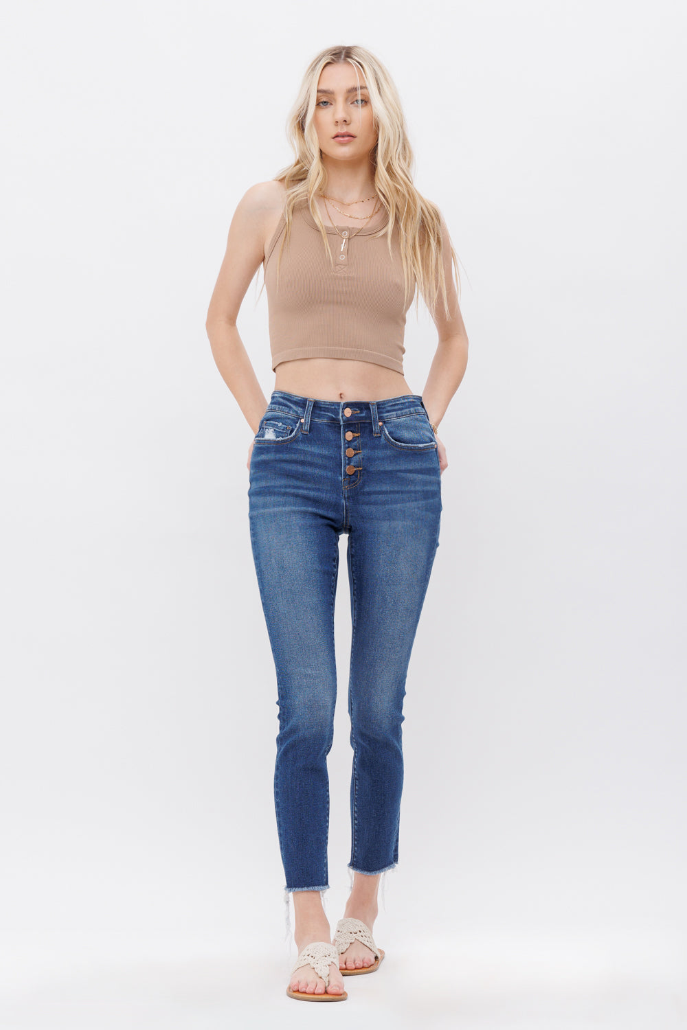 MID RISE CROP SKINNY W/ BUTTON UP