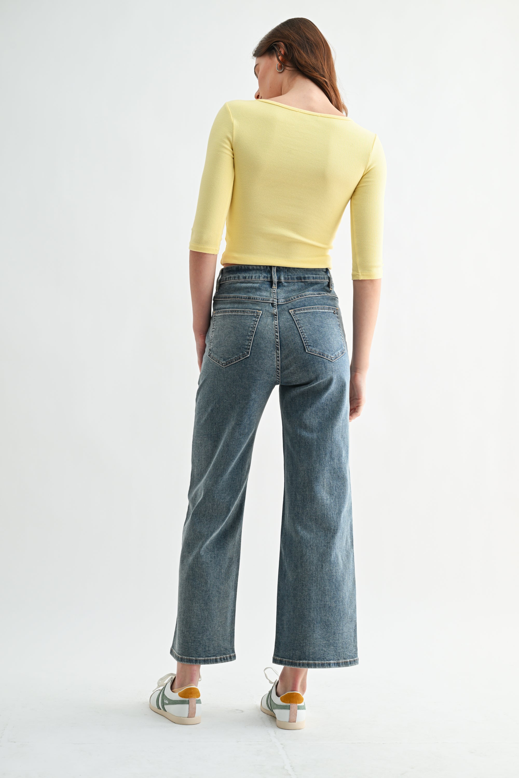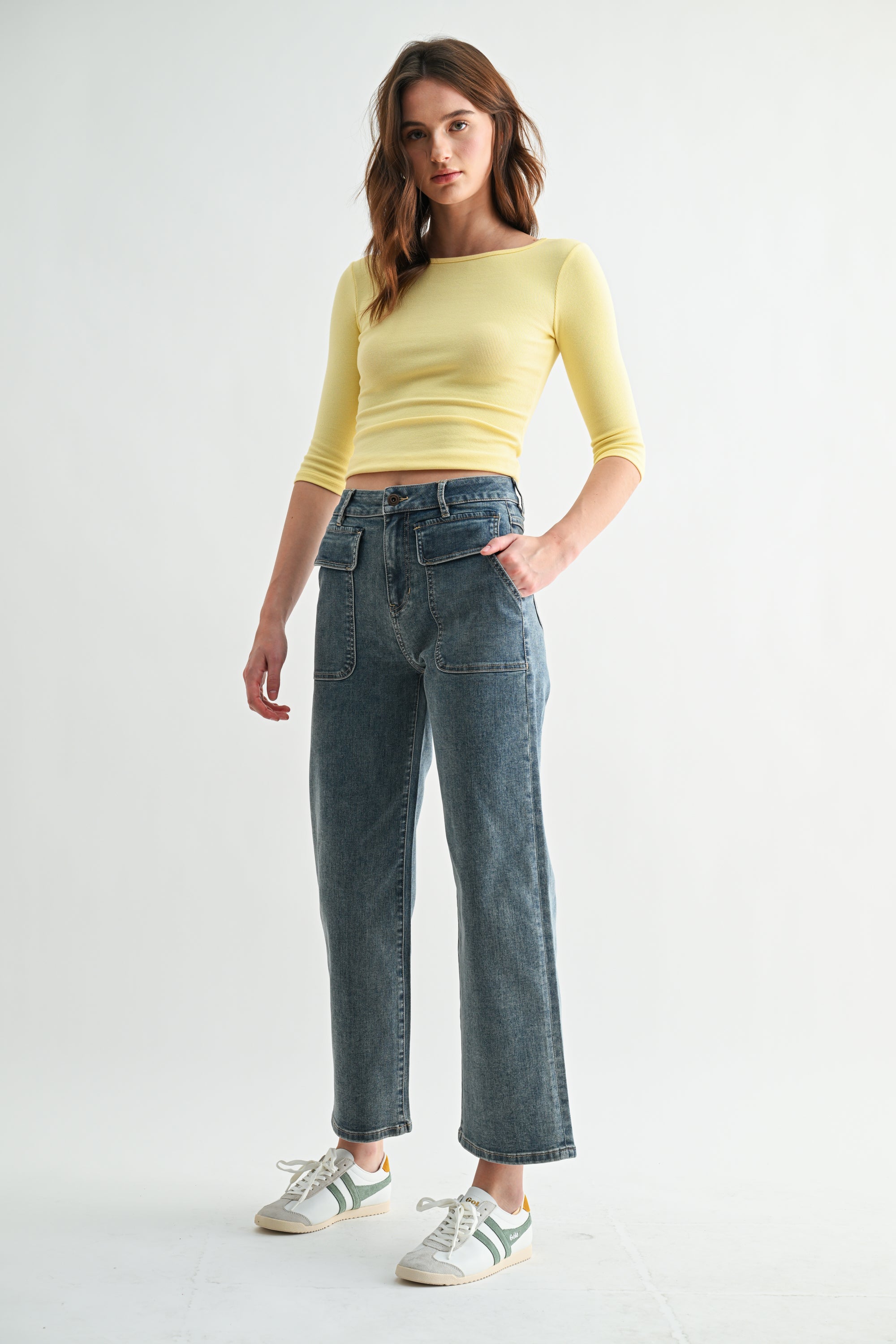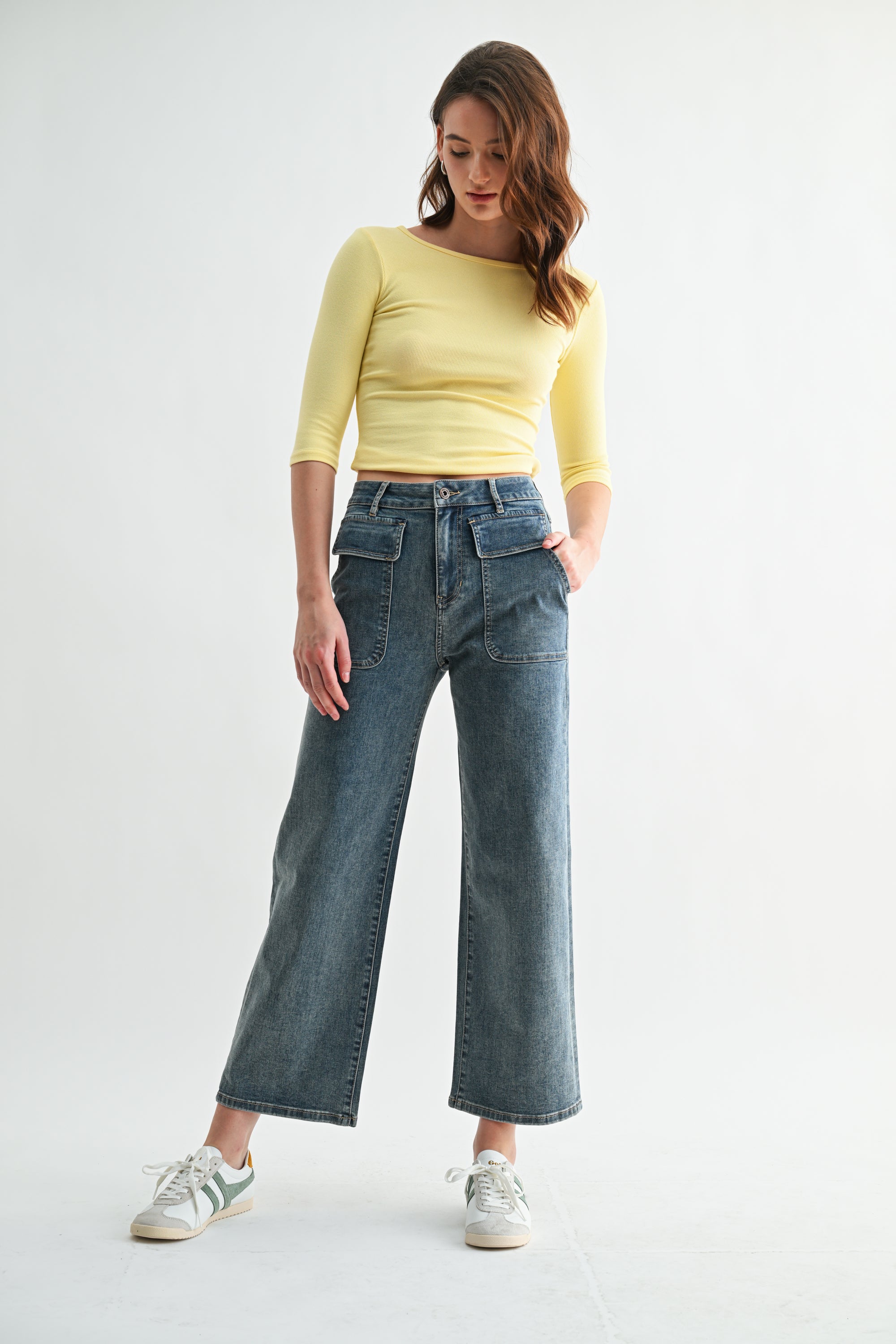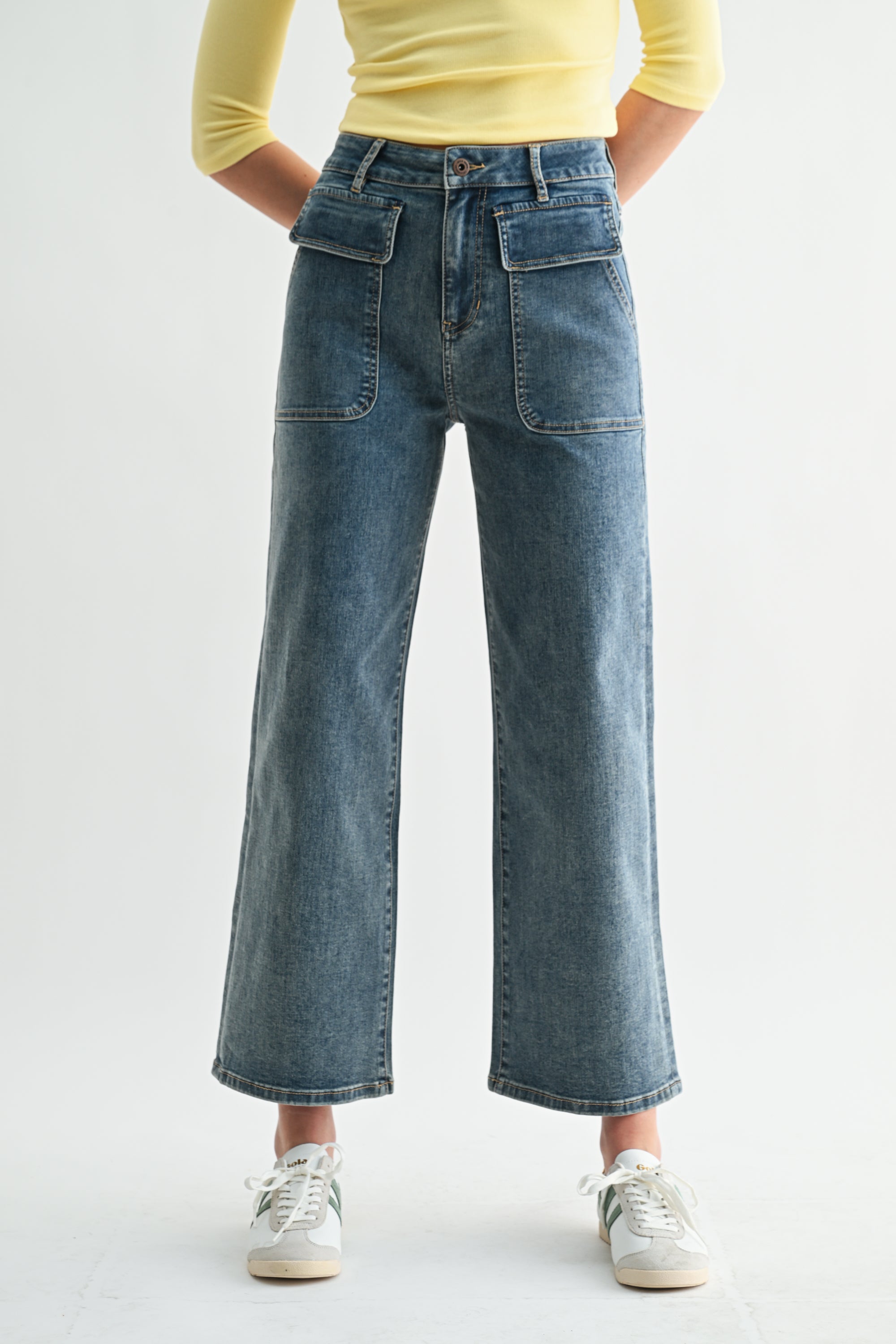 HIGH RISE PATCH POCKET WIDE LEG ANKLE