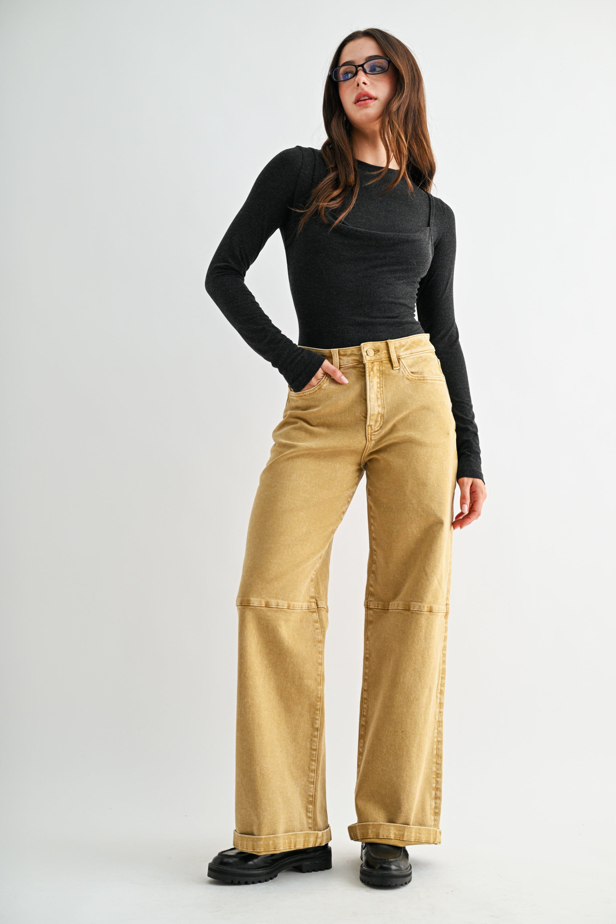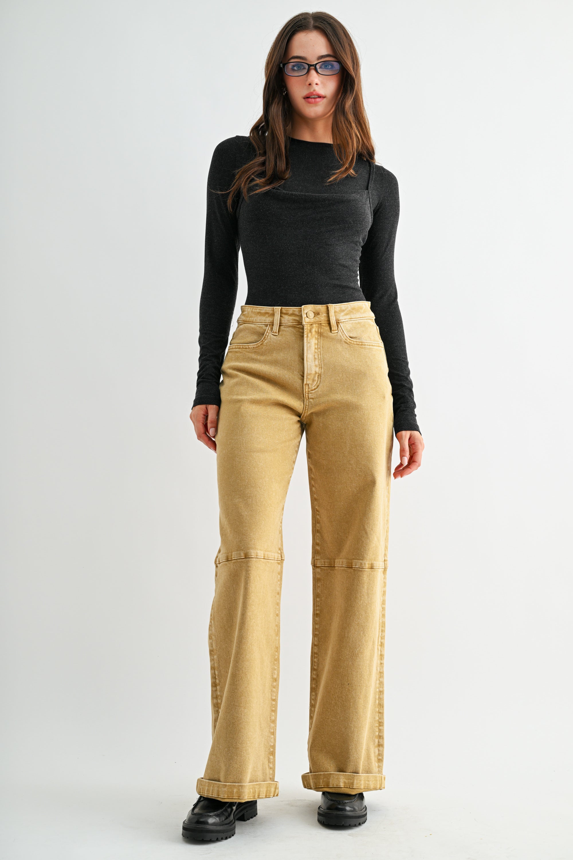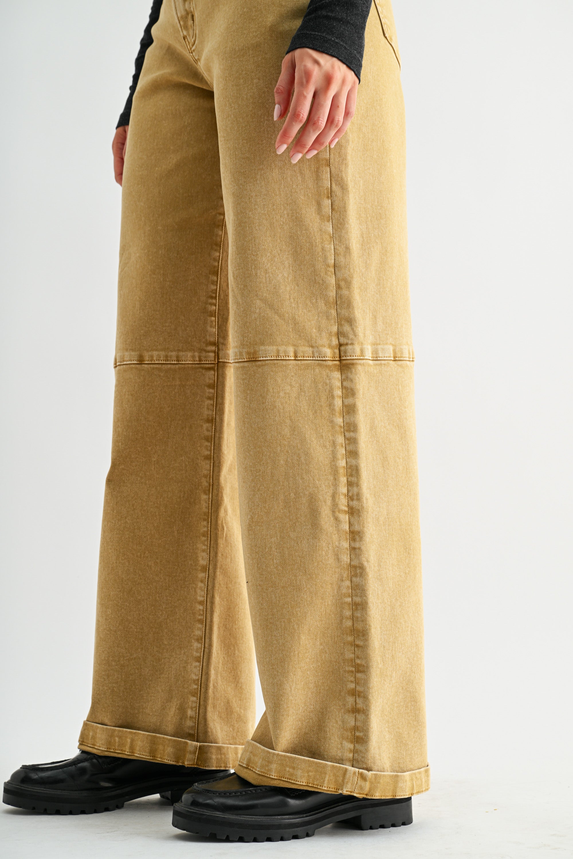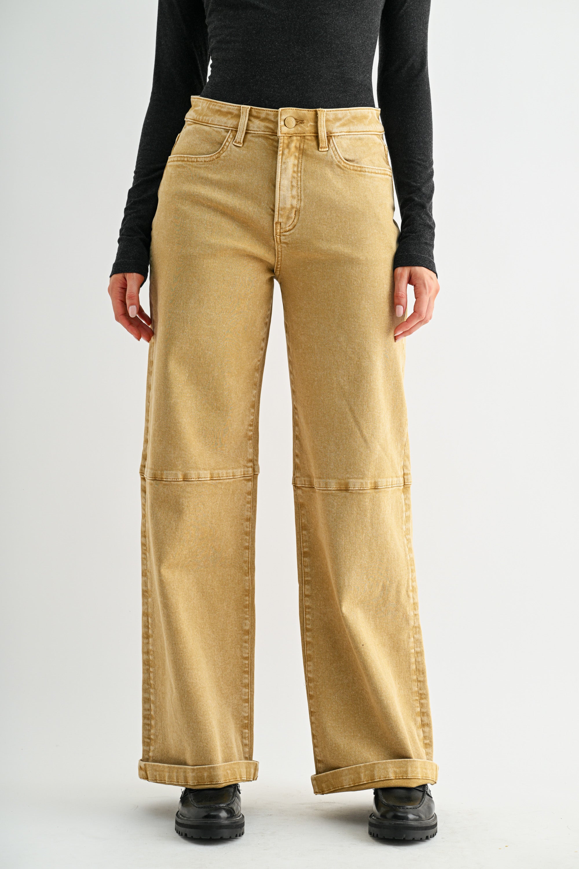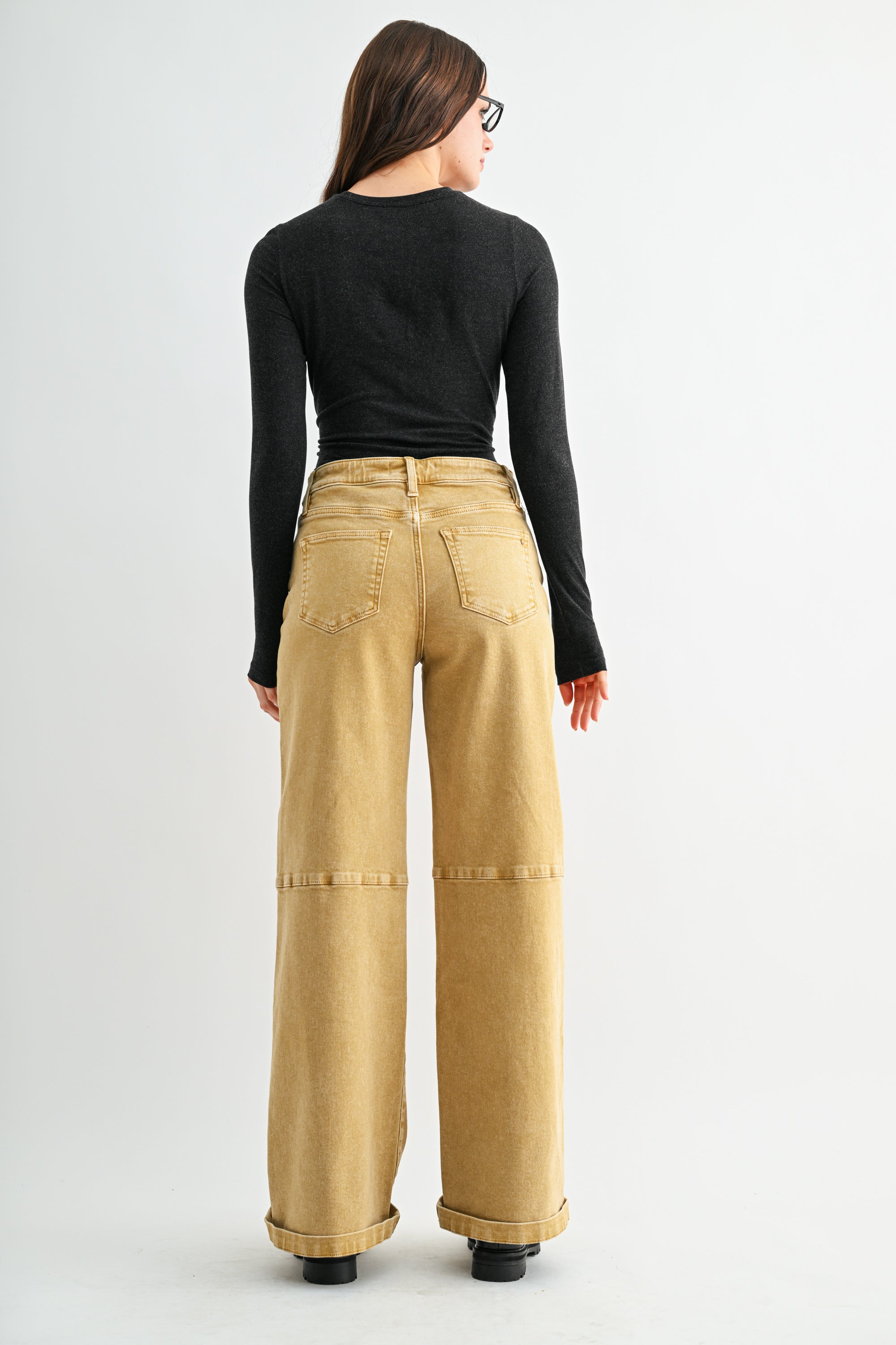 HIGH RISE WIDE LEG CUFFED JEANS