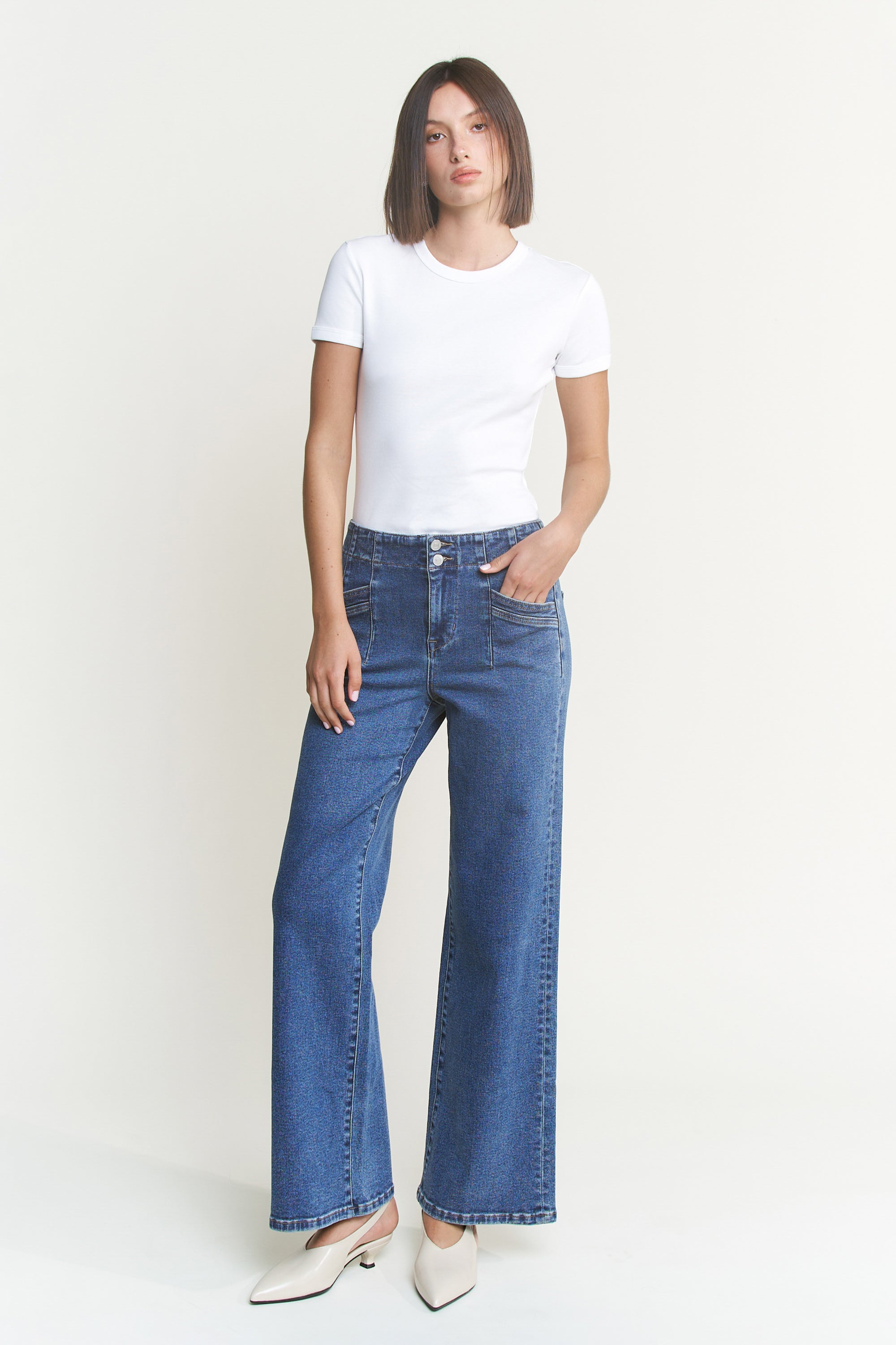 SUPER HIGH RISE WIDE LEG W. DBL BTN
