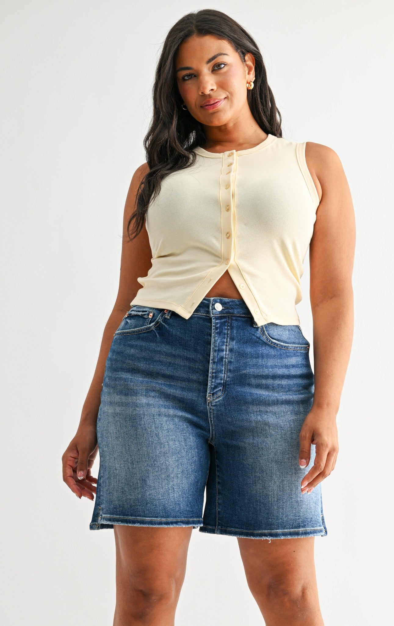 MEASUREMENT: FRONT RISE: 13 1/2", INSEAM: 8", LEG OPENING: 29"