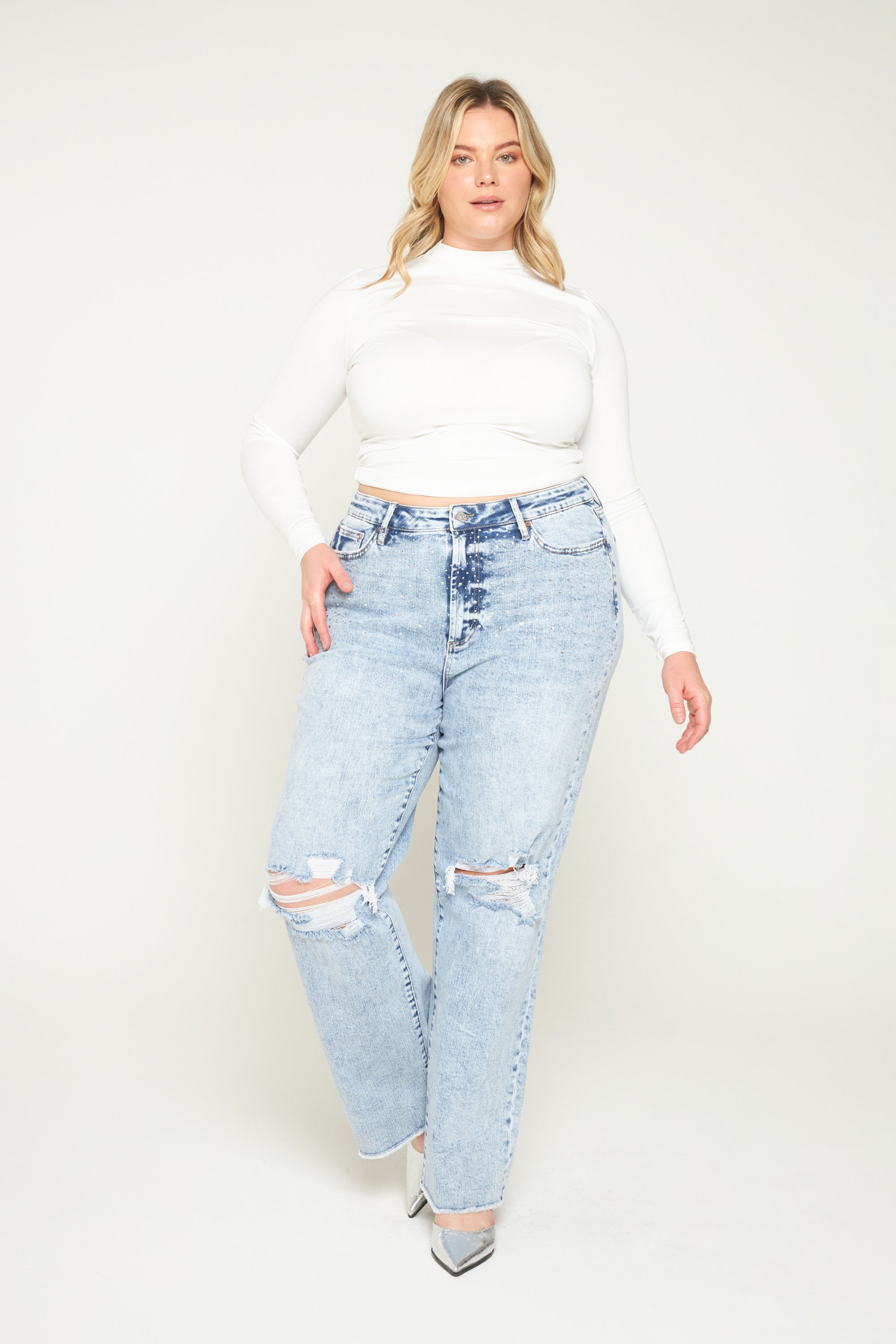 HIGH RISE STRAIGHT LEG EMBELLISHED JEANS